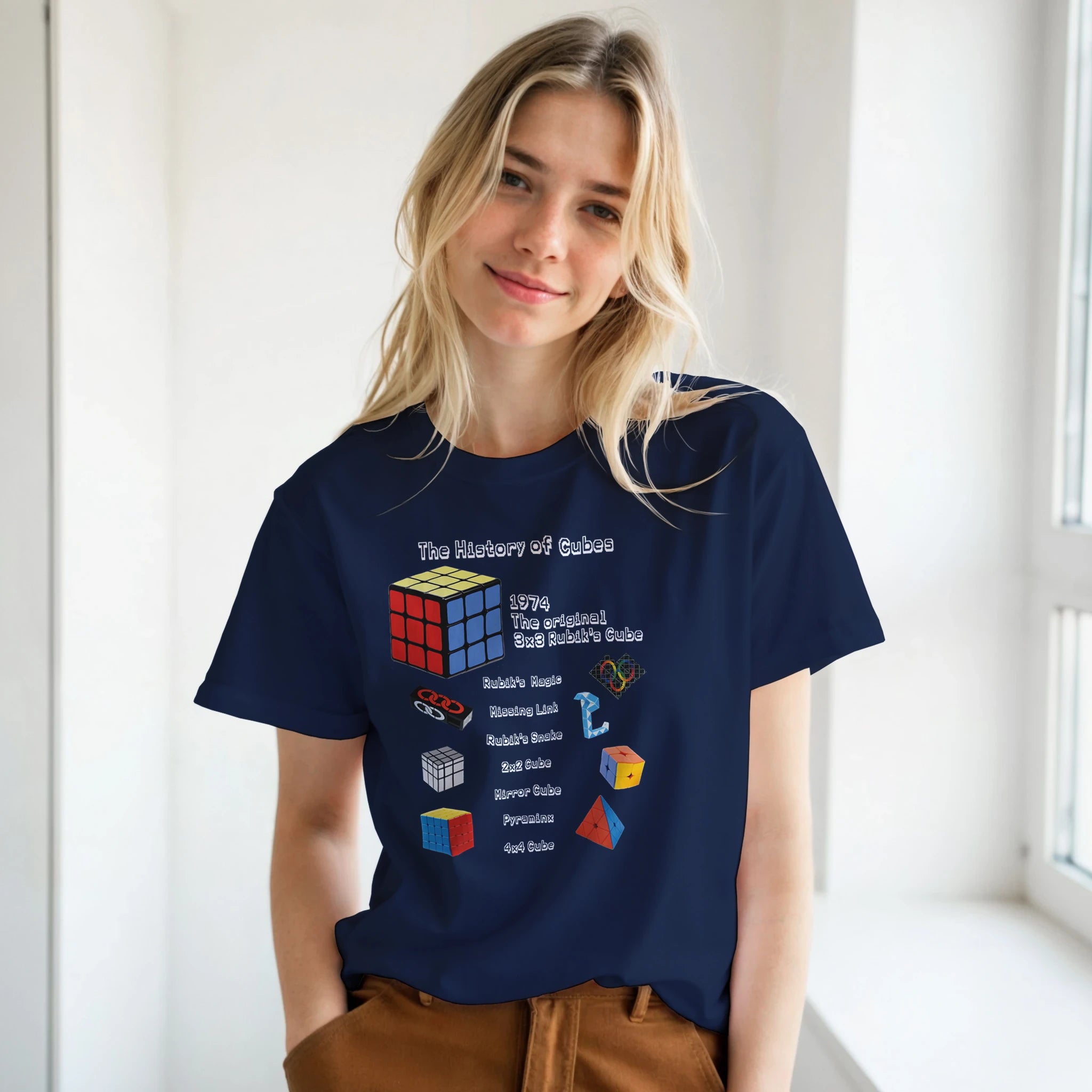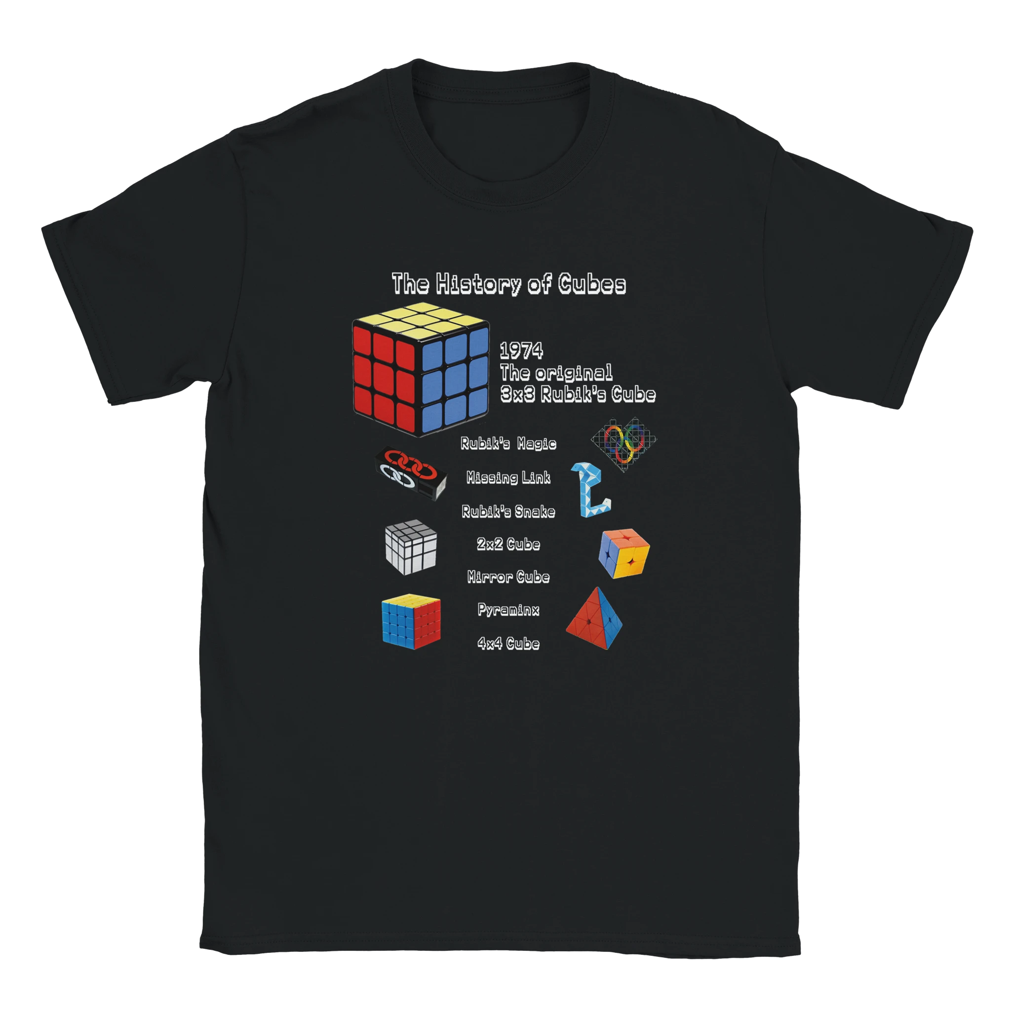 What better way to show off your love of cubes than with a comfy t-shirt that explains a brief history of the enigmatic Rubik's cube and a smattering of examples of cubes that exist now?